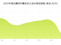 2021年05月6日至2021年06月10日,湖北襄阳中薯系列土豆价格总体呈现上涨趋势,期初报价0.45元/斤,期末报价0.5元/斤,上涨了11%。其中,最高点5月28日报价0.5元/斤,最低点5月21日报价0.1元/斤。