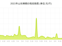 2021年03月6日至2021年07月6日,山东辣椒价格总体呈现下跌趋势,期初报价1.2元/斤,期末报价0.4元/斤,下跌了67%。其中,最高点5月21日报价8元/斤,最低点6月23日报价0.3元/斤。