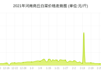 2020年12月1日至2021年03月20日,河南商丘白菜价格总体呈现下跌趋势,期初报价0.32元/斤,期末报价0.2元/斤,下跌了38%。其中,最高点2月14日报价05元/斤,最低点12月18日报价0元/斤。