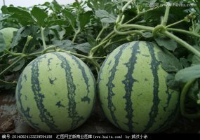 京心西瓜,上有薄薄的白色蜡粉,有明显绿色条带15~17条,果皮厚度0.5厘米,肉色桃红,纤维极少,含糖量11~12%,平均单果重5~12斤,4月中下旬上市。